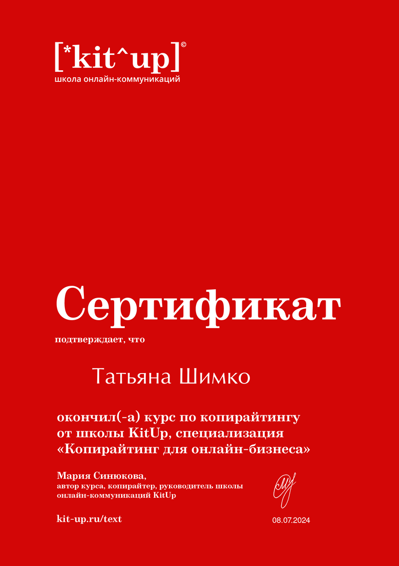 Меня зовут Татьяна, и я профессиональный копирайтер и переводчик немецкого и английского с более чем 20-летним опытом работы. Моя цель – помочь вашему бизнесу достигать новых высот, предоставляя высококачественные услуги по созданию контента и переводу.